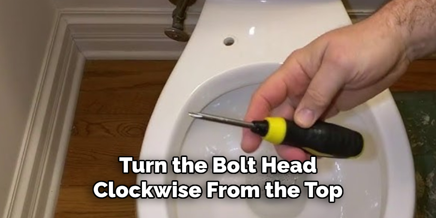 Using a screwdriver, turn the bolt head clockwise from the top. Continue tightening until the bolt is snug. Be careful not to over-tighten, as this could crack the toilet seat or damage the fittings.